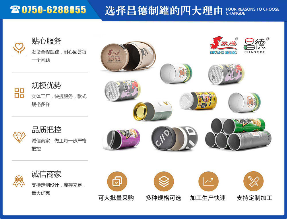江門市昌德五金制罐有限公司位于江門與珠海臨近的古井鎮(zhèn),是專業(yè)生產(chǎn)紙罐,食品紙罐系列的包裝研制、開(kāi)發(fā)、生產(chǎn)的廠家,從建廠至今,公司本著“重合同、守信用”的原則,以“質(zhì)量求生存,客戶至上”為經(jīng)營(yíng)宗旨,贏得了很好的信譽(yù),公司擁有國(guó)內(nèi)一流的技術(shù)設(shè)備和多年的生產(chǎn)經(jīng)驗(yàn)。年產(chǎn)休閑食品紙筒500萬(wàn)左右,紙筒2000萬(wàn)支左右,易拉罐,食品罐等1000萬(wàn)左右,產(chǎn)品銷往各地。我廠是以高科技為先導(dǎo),以技術(shù)創(chuàng)新整合為手段,成為迅速崛起的專業(yè)性包裝企業(yè),憑借艱苦的創(chuàng)業(yè)精神和集體智慧,采用規(guī)范的現(xiàn)代企業(yè)運(yùn)行機(jī)制,形成具有鮮明特色的企業(yè)文化模式和管理...